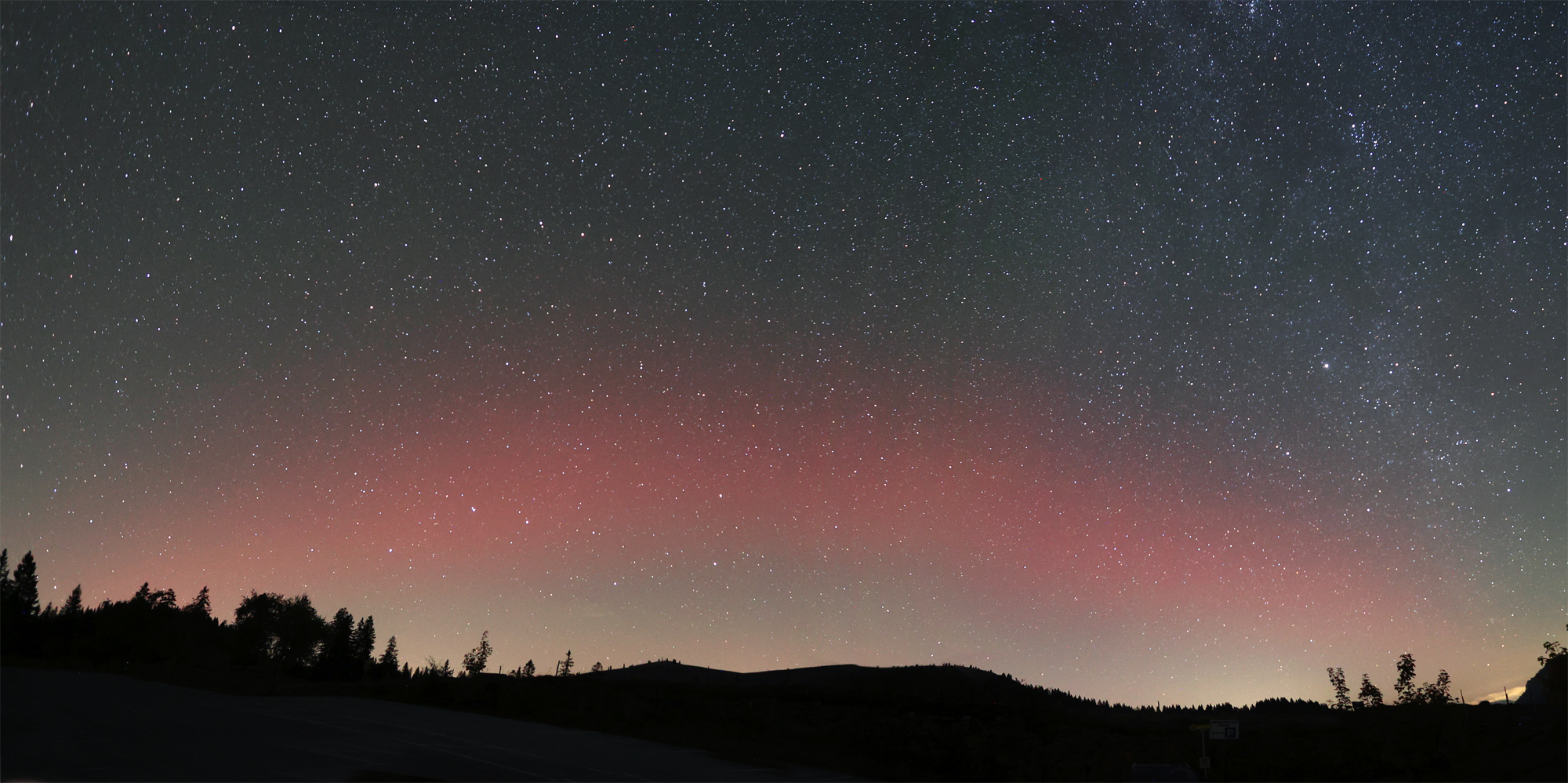Bereits ab der Abenddämmerung gab es die ganze Nacht mehr oder weniger intensives fotografisches Polarlicht |